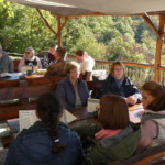 Der Sonntag startete bei traumhaftem, sonnigen Herbstwetter mit einer Wanderung zu Onkel Toms Hütte, zu der der Aufstieg im kleinen Ort Bullay begann. Unterwegs wurden zahlreiche Fotos gemacht, da sich bei jeder Atempause wieder eine neue, wunderschöne Aussicht bot. Die gemütliche Straußwirtschaft vom Weingut Lenz bot den happy voices beim Ausblick über die Weinberge und die Mosel leckere Weine,