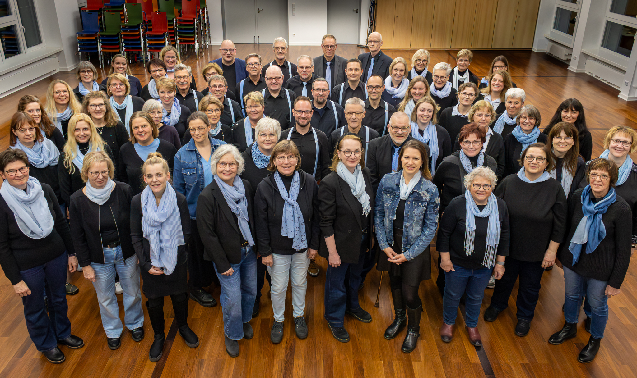 Am vergangenen Dienstag haben wir unsere Chorprobe mit einem Fotoshooting verbunden. 60 Sängerinnen und Sänger sowie unser Chorleiter waren dabei.