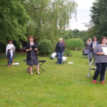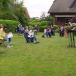 Endlich wieder gemeinsam singen!! 12 Wochen haben wir ,,Online-Proben“ in den einzelnen Stimmen durchgeführt. Am Dienstagabend, den 16.6. zur gewohnten Probenzeit haben wir uns im wunderschönen Garten unserer Chorsängerin Elisabeth endlich alle wiedergesehen und unsere erste Chorprobe unter freien Himmel durchgeführt. Es war nach so langer Zeit einfach nur herrlich, wieder zusammen zu proben, die Chorstimmen rechts und links neben einem zu hören, wieder einen vierstimmigen Chorklang wahrzunehmen und unseren Chorleiter wieder am E-Piano spielen und uns begleiten zu hören. Die Vögel in den Bäumen haben fleißig mit eingestimmt. Danke an Elisabeth und Hans-Jürgen, die dieses Treffen bei sich daheim möglich gemacht haben. Eine schönere Kulisse hätte man sich nicht wünschen können.