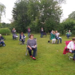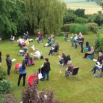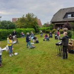 ,,From a distance“ wurde gesungen und der Titel hätte somit nicht treffender gewählt werden können. Wir haben es dann auch schön wörtlich genommen und haben artig unsere Mindestabstände eingehalten. Die Bedingungen und Auflagen, unter denen Chorproben möglich sind, erfordern von dem Chor ein großes Maß an Organisation und Einschränkung. Besondere Zeiten erfordern eben extreme Maßnahmen. Dennoch hat die Probe allen Sängern gut getan und hat Lust auf mehr gemacht. Auch das Wetter hat es gut mit uns gemeint, der Himmel schloss pünktlich zum Probenstart seine Schleusen.