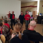 Das sollte doch mit einem Chor wunderbar funktionieren und so wurden die anwesenden Sänger/innen in 5 Gruppen aufgeteilt. Beate zitierte eine Liedzeile eines Advents- oder Weihnachtsliedes, die Gruppe, die den Titel zuerst richtig nannte, durfte das erratene Lied vorsingen und erhielt dann einen Punkt.