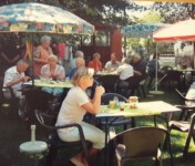 Im Anschluss daran packten alle tatkräftig mit an, um die Vorbereitung wie ,,Stühlestellen“ und ,,Tischerücken“ und ,,Pavillonbauen“ zu erledigen und den schönen Garten für die Gäste herzurichten. So konnten wir am nächsten Tag die zahlreichen Besucher herzlich willkommen heißen. In diesem Jahr folgte die Percussion Gruppe des MGs, die Chorlibris, der MGV Eintracht Büderich, die CornerStones aus Wickede und Belcanto aus Ense unserer Einladung und sorgten mit ihren Liedbeiträgen für ein abwechslungsreiches Programm unter freiem Himmel. Des Wetter hätte besser nicht sein können. Bei Kaffee und Kuchen, Würstchen vom Grill und kühlen Getränken konnten die Zuhörer im Schatten der Bäume der Musik lauschen. Ein so tolles Feedback am Ende unserer Veranstaltung motivierte uns, das Mühlenfest auf jeden Fall zu wiederholen.