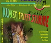 Unter dem Motto ,,Kunst trifft Stimme“ stand unser 3. Büdericher Mühlenfest am 16.06.2007. In der Gartenanlage der ,,Alten Mühle“ stellte der Künstler Gottfried Stratmeier seine Holzfiguren aus und sorgte damit für eine kunstvolles und passendes Ambiente unter freiem Himmel.